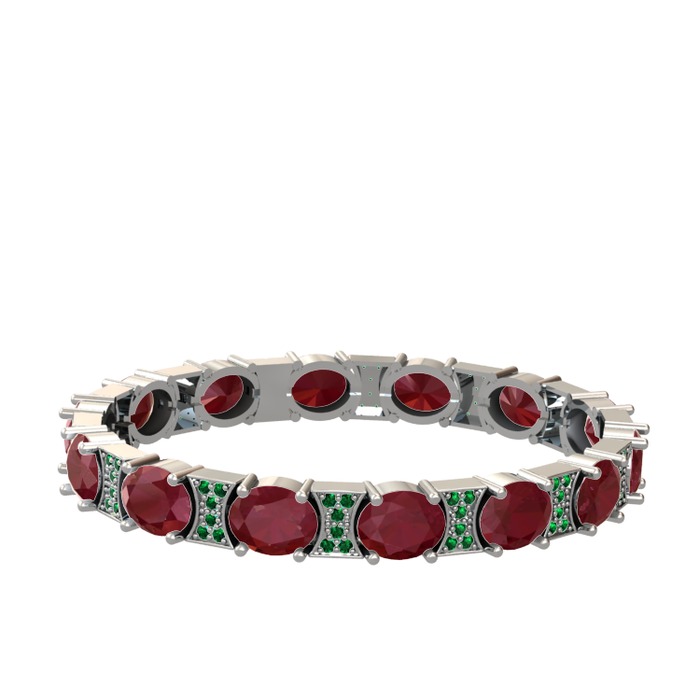 Kök yakut ve yeşil kuvars 8 ayar beyaz altın bilezik