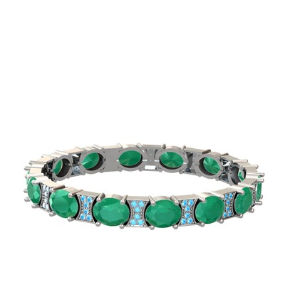 Kök zümrüt ve akuamarin 925 ayar gümüş bilezik