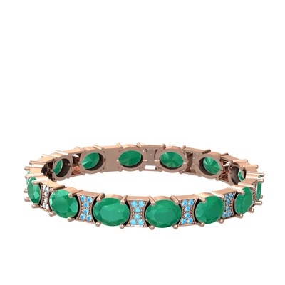 Kök zümrüt ve akuamarin 925 ayar rose altın kaplama gümüş bilezik