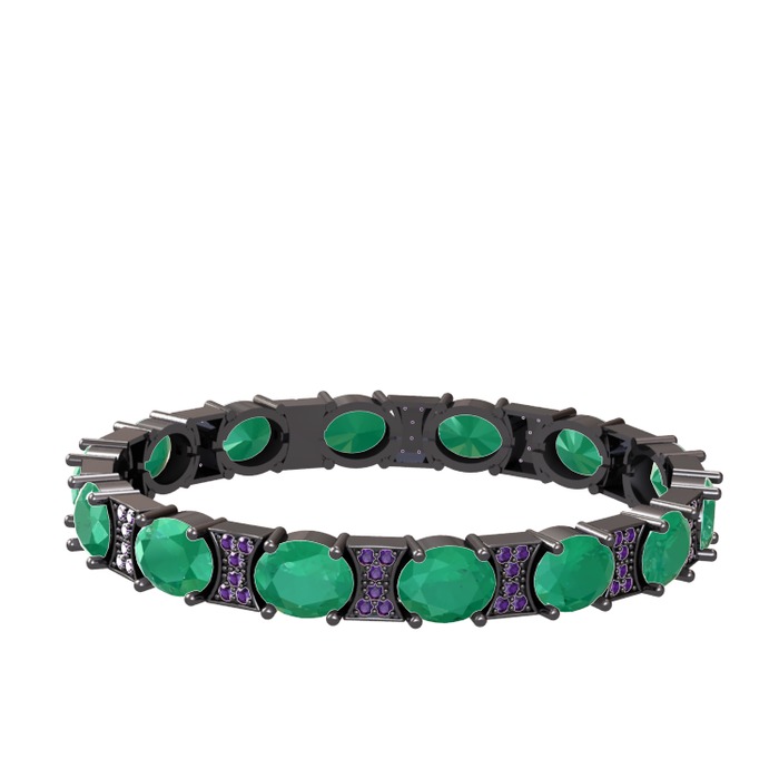 Kök zümrüt ve ametist 925 ayar siyah rodyum kaplama gümüş bilezik
