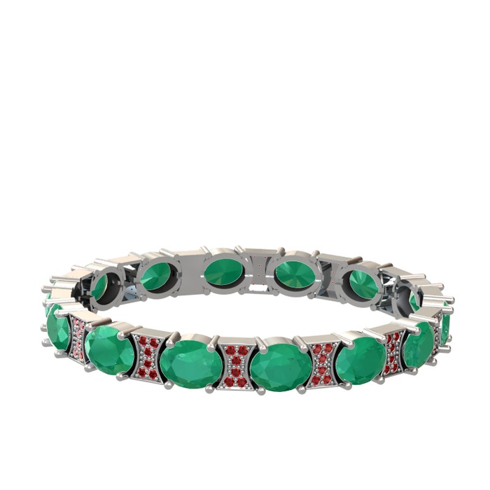 Kök zümrüt ve garnet 8 ayar beyaz altın bilezik
