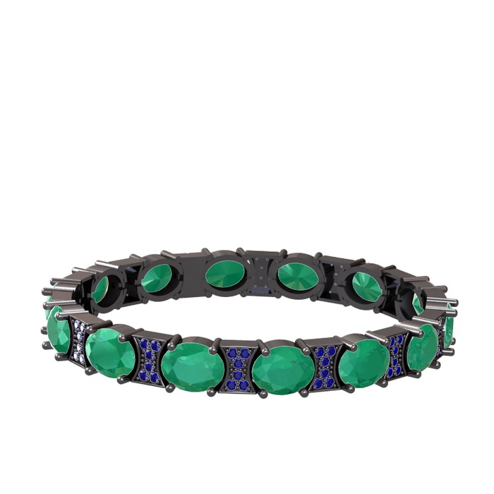 Kök zümrüt ve lab safir 925 ayar siyah rodyum kaplama gümüş bilezik