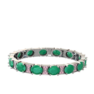 Kök zümrüt ve pembe kuvars 18 ayar beyaz altın bilezik