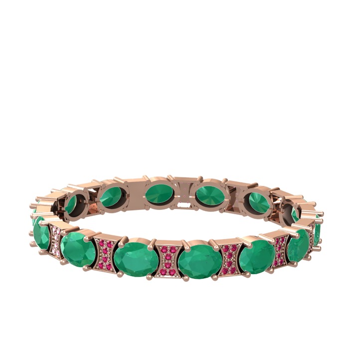 Kök zümrüt ve rodolit garnet 18 ayar rose altın bilezik