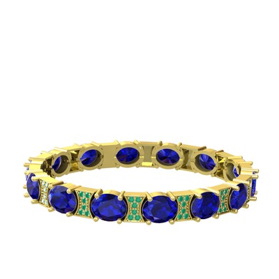 Lab safir ve kök zümrüt 925 ayar altın kaplama gümüş bilezik