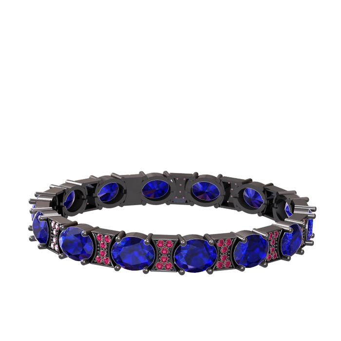 Lab safir ve rodolit garnet 925 ayar siyah rodyum kaplama gümüş bilezik