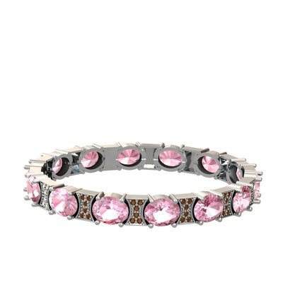 Pembe kuvars ve dumanlı kuvars 14 ayar beyaz altın bilezik