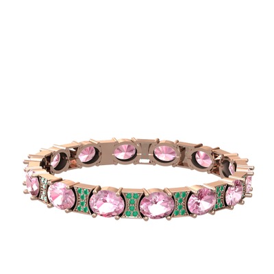 Pembe kuvars ve kök zümrüt 18 ayar rose altın bilezik