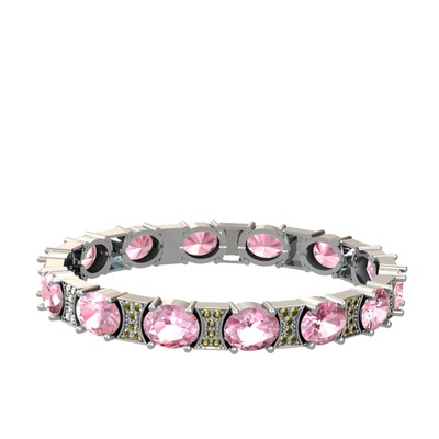 Pembe kuvars ve peridot 8 ayar beyaz altın bilezik