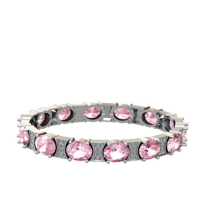 Pembe kuvars ve pırlanta 8 ayar beyaz altın bilezik (1.95 karat)