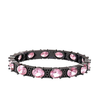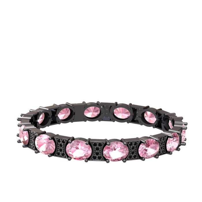 Pembe kuvars ve siyah zirkon 925 ayar siyah rodyum kaplama gümüş bilezik