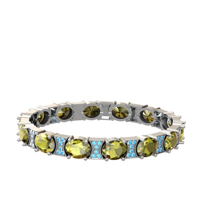 Peridot ve akuamarin 14 ayar beyaz altın bilezik