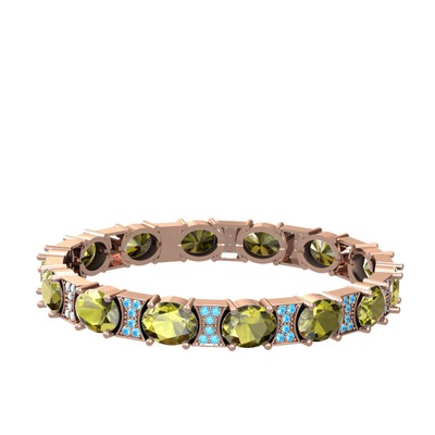 Peridot ve akuamarin 14 ayar rose altın bilezik