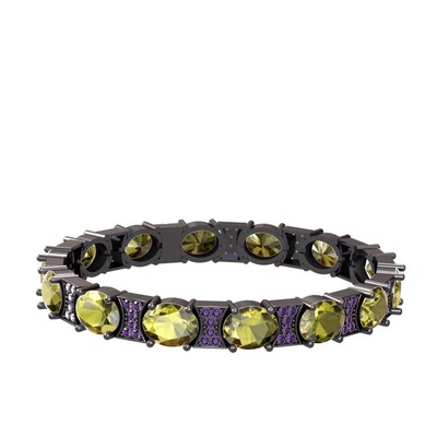 Peridot ve ametist 925 ayar siyah rodyum kaplama gümüş bilezik