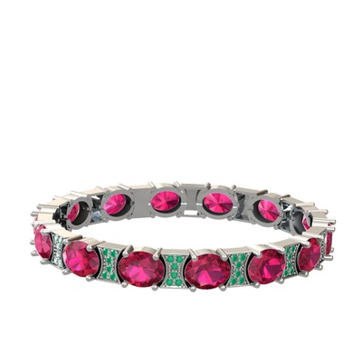 Rodolit garnet ve kök zümrüt 8 ayar beyaz altın bilezik