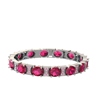 Rodolit garnet ve pembe kuvars 925 ayar gümüş bilezik