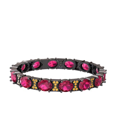 Rodolit garnet ve sitrin 925 ayar siyah rodyum kaplama gümüş bilezik