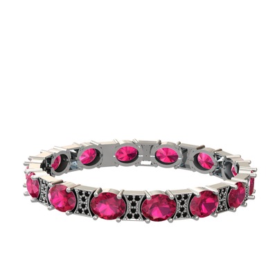 Rodolit garnet ve siyah zirkon 14 ayar beyaz altın bilezik