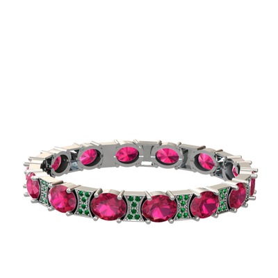 Rodolit garnet ve yeşil kuvars 14 ayar beyaz altın bilezik