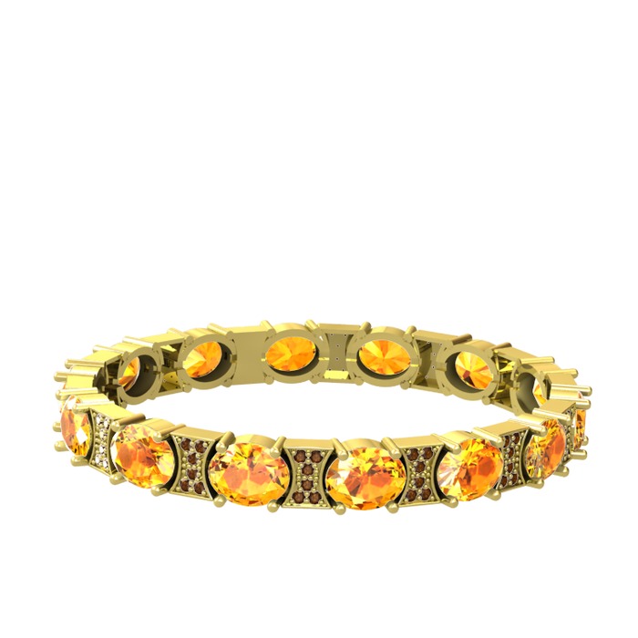 Sitrin ve dumanlı kuvars 925 ayar altın kaplama gümüş bilezik