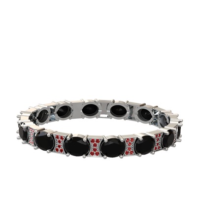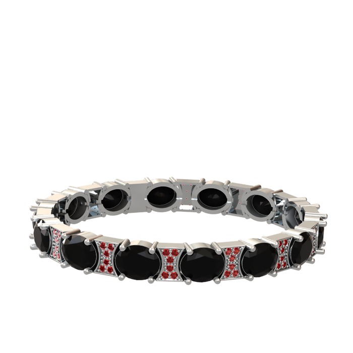 Siyah zirkon ve garnet 14 ayar beyaz altın bilezik