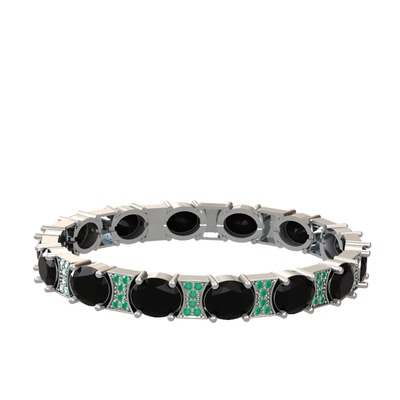 Siyah zirkon ve kök zümrüt 8 ayar beyaz altın bilezik