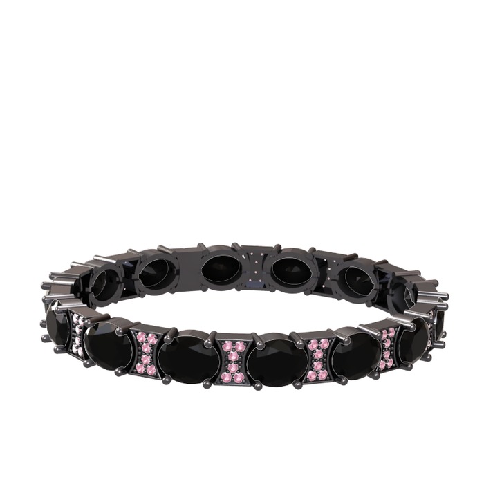 Siyah zirkon ve pembe kuvars 925 ayar siyah rodyum kaplama gümüş bilezik