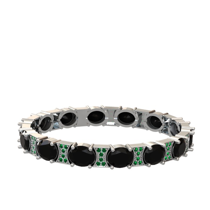 Siyah zirkon ve yeşil kuvars 18 ayar beyaz altın bilezik