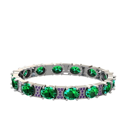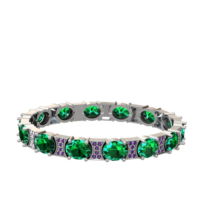 Yeşil kuvars ve ametist 18 ayar beyaz altın bilezik