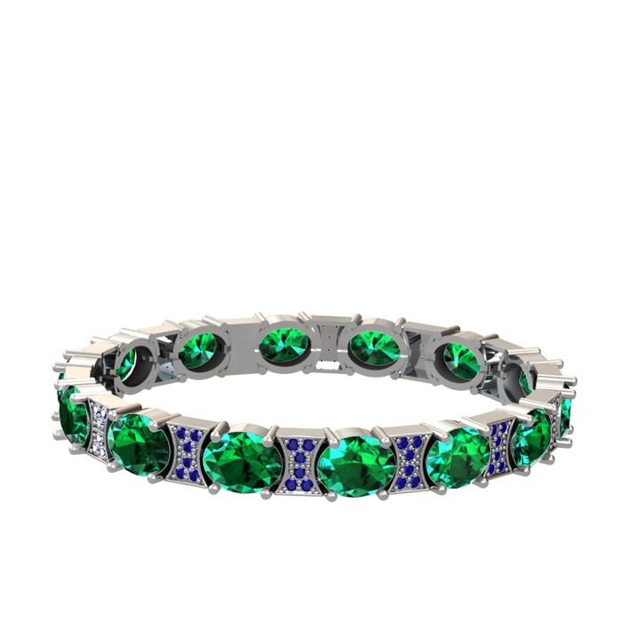 Yeşil kuvars ve lab safir 14 ayar beyaz altın bilezik