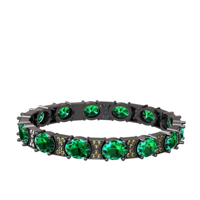 Yeşil kuvars ve peridot 925 ayar siyah rodyum kaplama gümüş bilezik