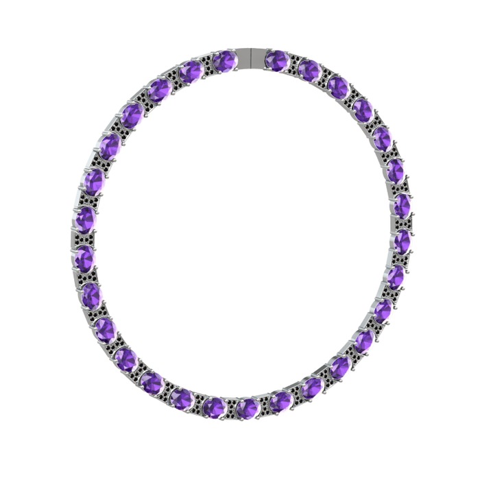 Ametist ve siyah zirkon 8 ayar beyaz altın kolye