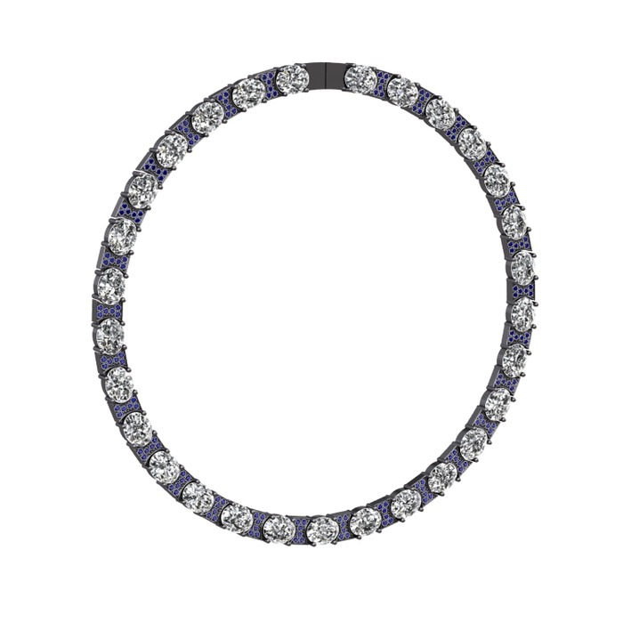 Beyaz zirkon ve lab safir 925 ayar siyah rodyum kaplama gümüş kolye