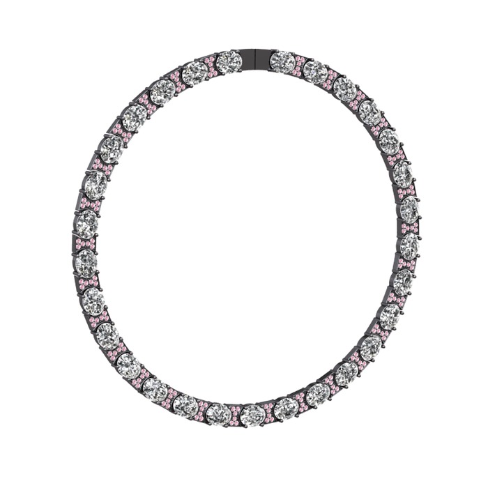 Beyaz zirkon ve pembe kuvars 925 ayar siyah rodyum kaplama gümüş kolye