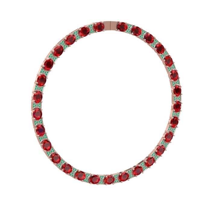 Garnet ve kök zümrüt 18 ayar rose altın kolye