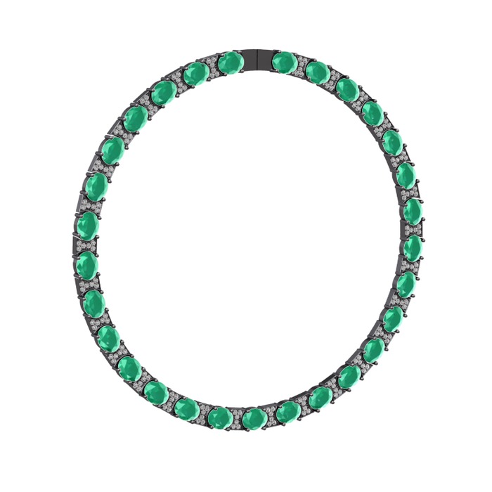 Kök zümrüt ve beyaz zirkon 925 ayar siyah rodyum kaplama gümüş kolye
