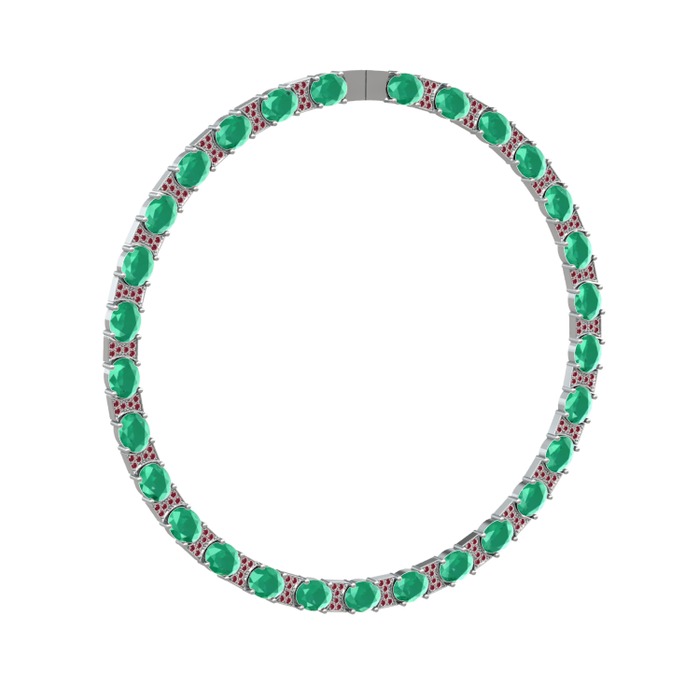 Kök zümrüt ve kök yakut 8 ayar beyaz altın kolye