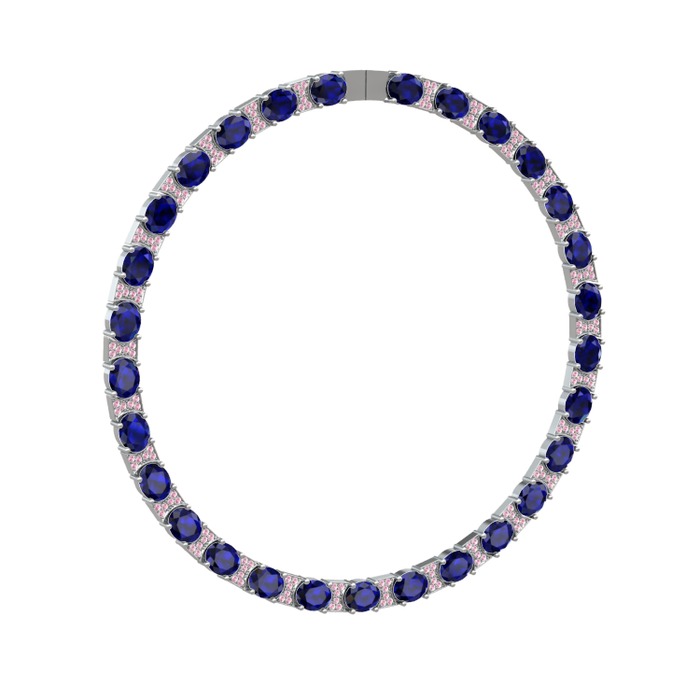 Lab safir ve pembe kuvars 18 ayar beyaz altın kolye