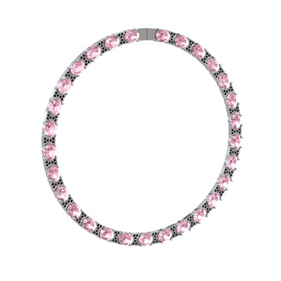 Pembe kuvars ve siyah zirkon 18 ayar beyaz altın kolye