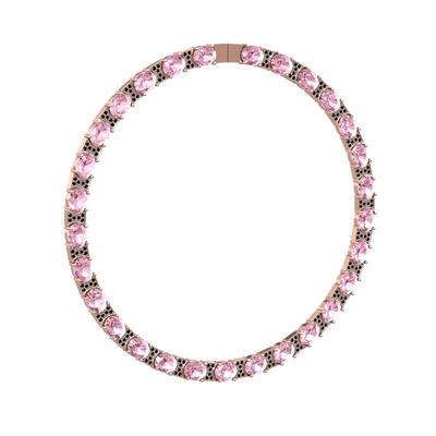 Pembe kuvars ve siyah zirkon 925 ayar rose altın kaplama gümüş kolye