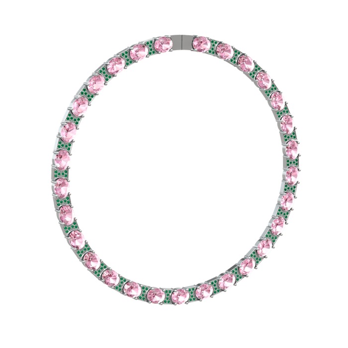 Pembe kuvars ve yeşil kuvars 14 ayar beyaz altın kolye