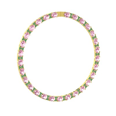 Pembe kuvars ve yeşil kuvars 18 ayar altın kolye