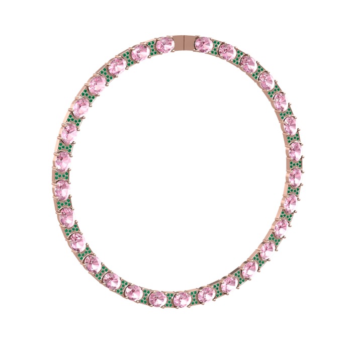 Pembe kuvars ve yeşil kuvars 925 ayar rose altın kaplama gümüş kolye