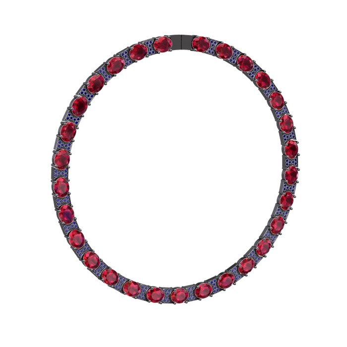 Rodolit garnet ve lab safir 925 ayar siyah rodyum kaplama gümüş kolye