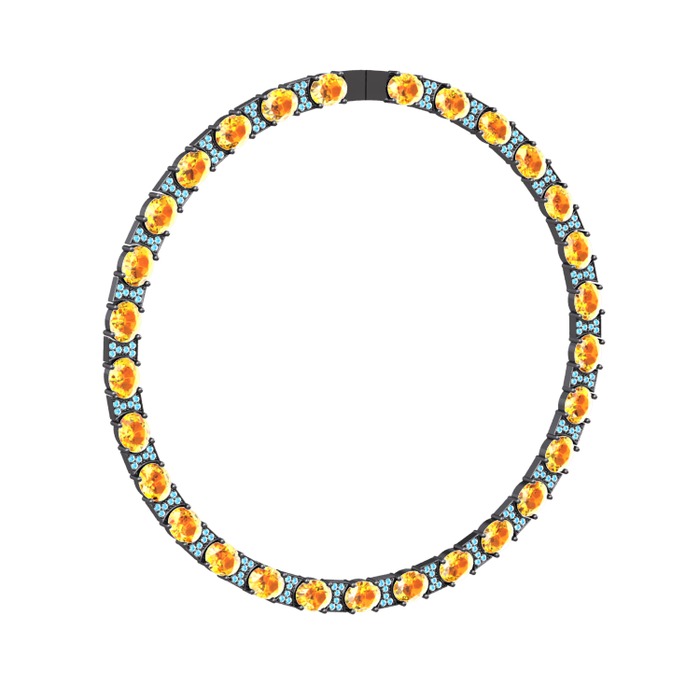 Sitrin ve akuamarin 925 ayar siyah rodyum kaplama gümüş kolye