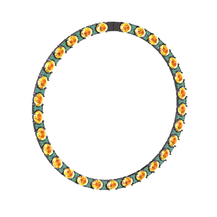 Sitrin ve kök zümrüt 925 ayar siyah rodyum kaplama gümüş kolye
