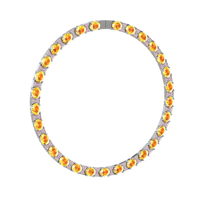 Sitrin ve pembe kuvars 8 ayar beyaz altın kolye