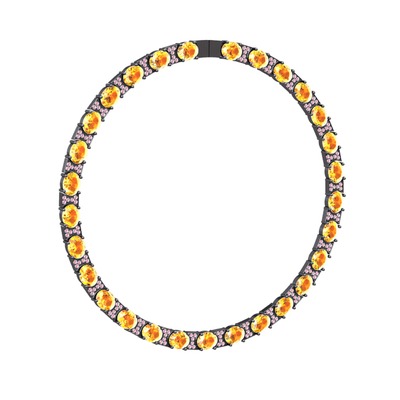 Sitrin ve pembe kuvars 925 ayar siyah rodyum kaplama gümüş kolye