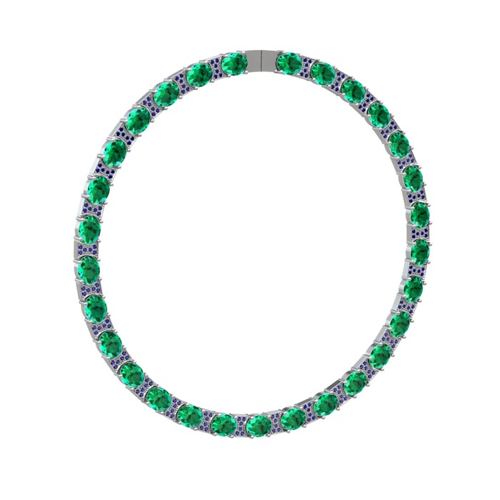 Yeşil kuvars ve lab safir 14 ayar beyaz altın kolye