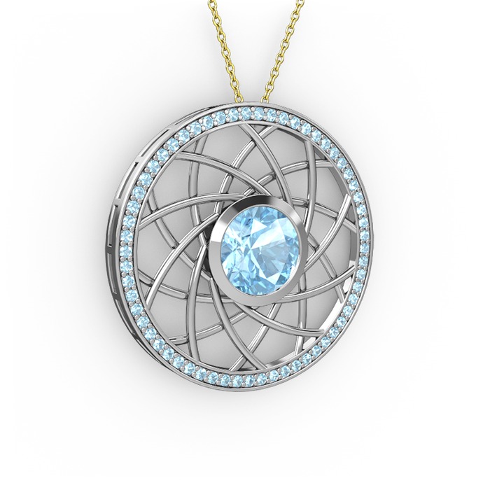 Akuamarin 18 ayar beyaz altın kolye (40 cm gümüş rolo zincir)